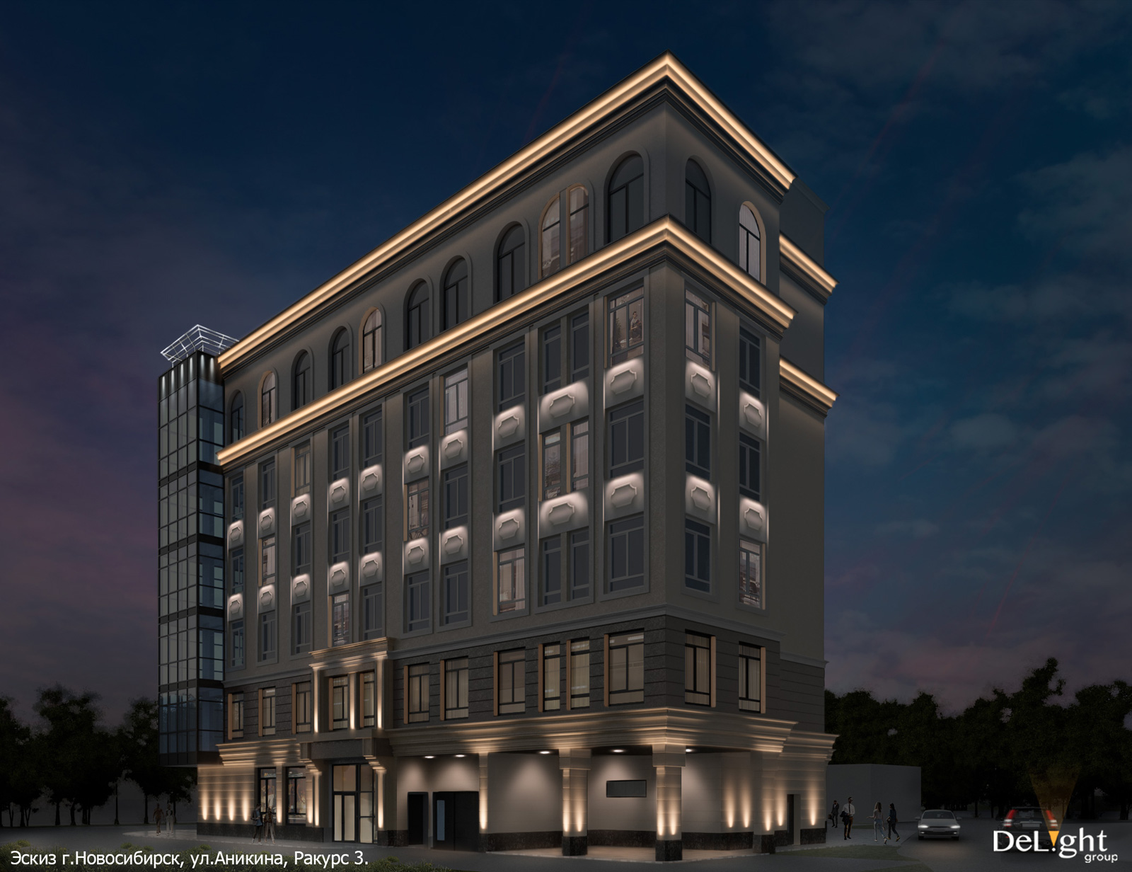 Здание общественного назначения с подземной автостоянкой по ул. Аникина, 6 в Кировском районе г. Новосибирска.